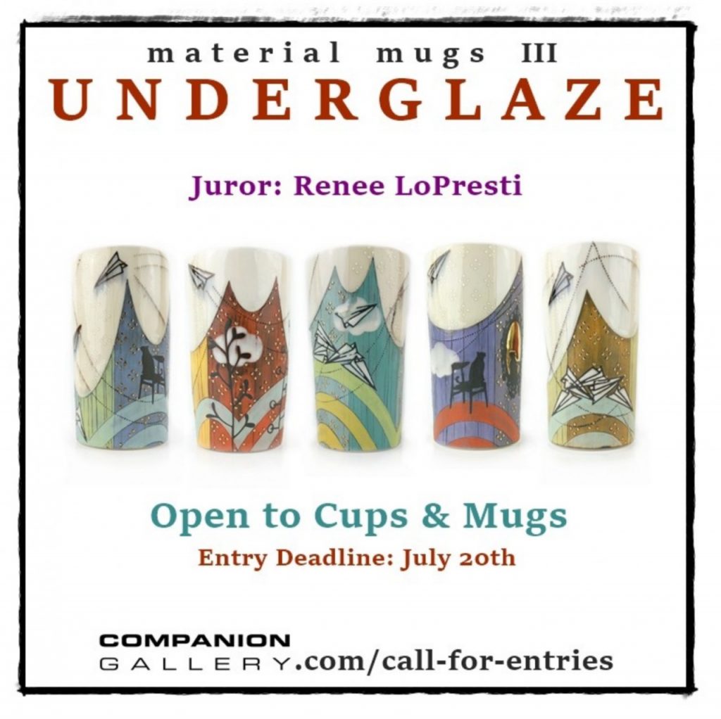 Material Mugs III: UNDERGLAZE is a survey of contemporary drinking vessels which employ any and every use of underglaze possible. The exhibition is open to every type of clay, temperature, and atmosphere. Our hope is to present a comprehensive collection of the full spectrum and potential of underglazes.