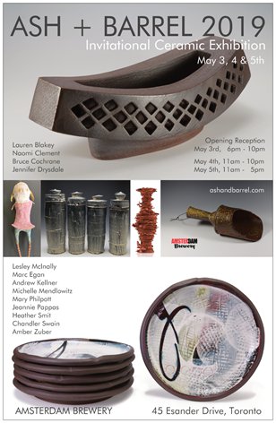 ASH + BARREL is an Invitational Exhibition featuring the celebrated craft of contemporary ceramic artists and makers from Southern Ontario. Organized by Andrew Kellner and Heather Smit, The show is a nod to our mentors and to raising a glass in the spirit of celebration. Opening Party hosted by Amsterdam Brewery. Join us in celebration Friday, May 3rd (6-10pm)