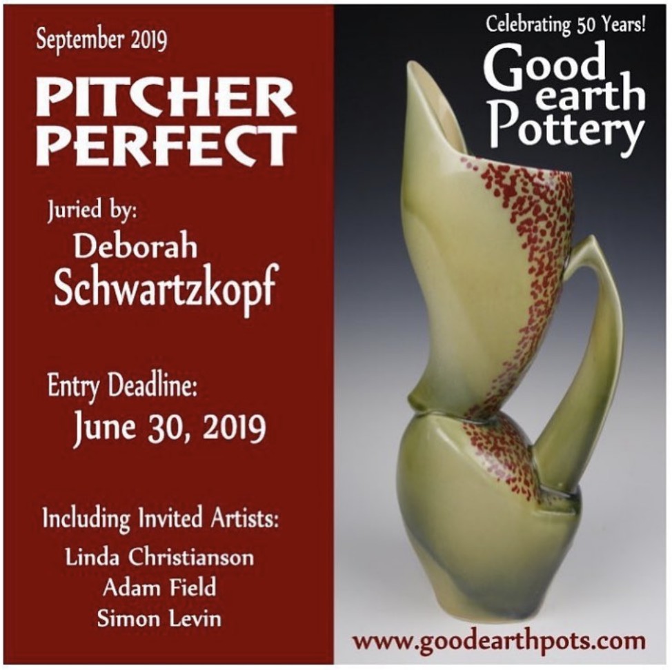 Call for Entries! To celebrate our 50 years of existence, and to shake things up a bit, we’re inviting residents of the US and Canada to apply for a juried show of pitchers! Ceramics Monthly’s 2019 Artist of the Year, Deborah Schwartzkopf, will do the jurying for “Pitcher Perfect” and select our $300 prize winner. The show will also include pitchers by invited artists Linda Christianson, Adam Field and Simon Levin. Deadline to apply is June 30, 2019.