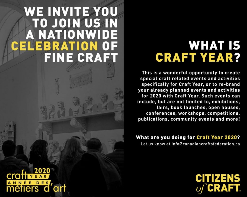 A year-long festival of contemporary fine craft is on the horizon! Craft Year is a platform to highlight Canadian craft activity at the local, regional, national and international levels during the year 2020.