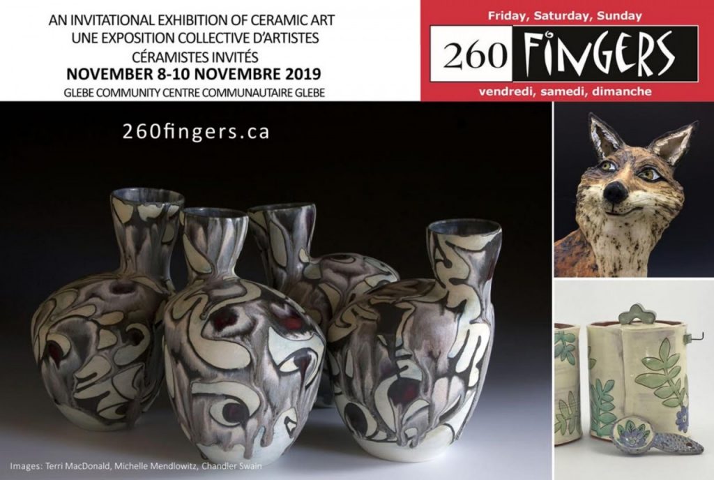 To join in a conversation with 26 ceramic artists and learn more about their relationship with clay, come to 260 Fingers at the Glebe Community Centre from November 8 to 10! For the 15th consecutive year, 26 of Ontario and Quebec’s most accomplished ceramic artists are converging to exhibit and sell some of the most innovative and inspiring clay work being produced in the region. The breadth and caliber of this invitational show is recognized as unique in both provinces and features work from functional to sculptural, wood-fired to electric-fired, subtle to highly decorative.