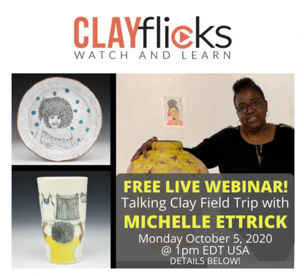 t’s time for our next Talking Clay Field Trip Webinar! Hosted by Simon Levin and Jennifer Harnetty, this field trip will be heading to Tyrone, Pennsylvania, to chat with artist and educator Michelle Ettrick! This free webinar will be held on Monday, October 5th at 1 pm EDT USA.