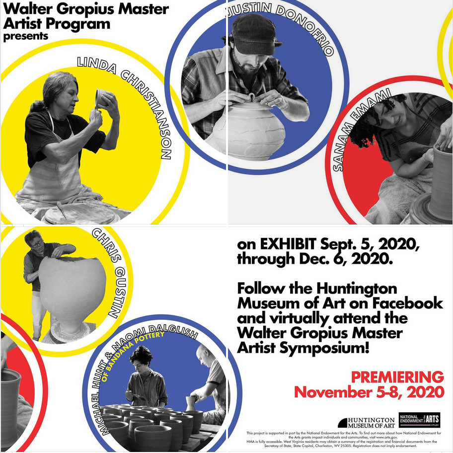 The Walter Gropius Master Artist Virtual Ceramic Symposium begins on Thursday, Nov. 5, 2020, at 7 p.m., with an online public video lecture series, featuring all six Walter Gropius Master Artists. A free virtual symposium workshop will take place on Friday, Nov. 6, and Saturday, Nov. 7, beginning at 10 a.m., featuring videos of the six ceramic artists demonstrating their process.