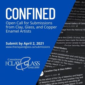 We are pleased to announce a national open call for submissions from Canadian clay, glass and copper enamel artists for Confined, a national group exhibition.