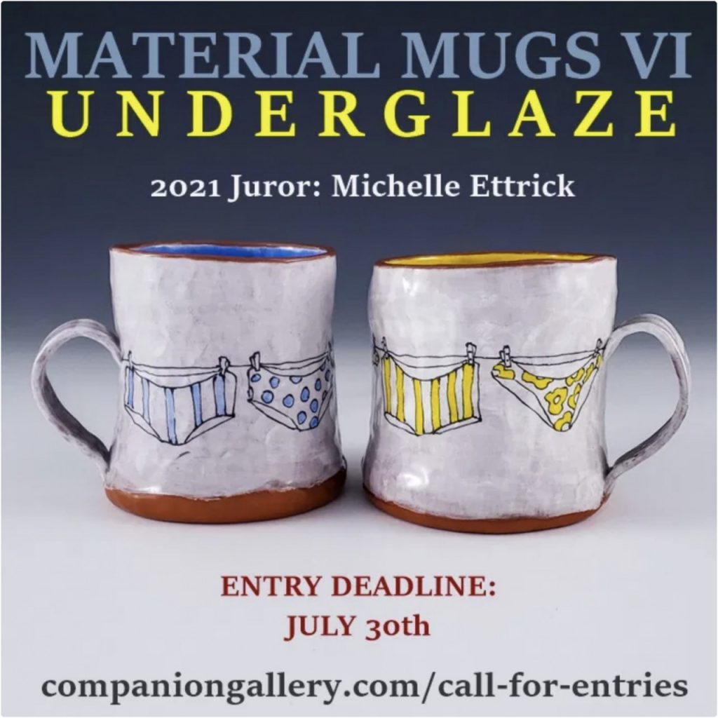 Material Mugs is our annual material based cups show and this year we will again be featuring underglazes! Our hope is to exhibit cups which express the full range of surface possibilities- underglazes that are trailed, painted, sprayed, transferred, washed, globbed on, inlayed etc.