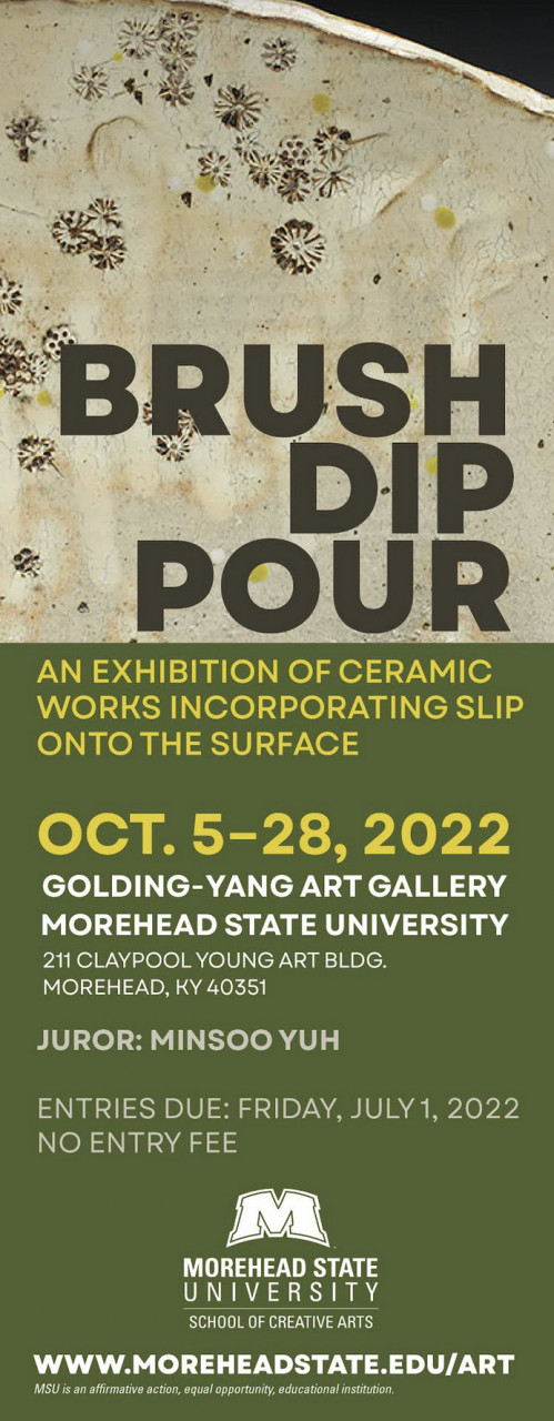 ELIGIBILITY: The exhibition is open to all artists (age 18 or older) located anywhere in the United States and abroad. All works must be primarily ceramic. Mixed media works will be accepted only if ceramic materials are the primary media. All works must incorporate the use of clay slip on the surface. This exhibition is open to functional and sculptural work.