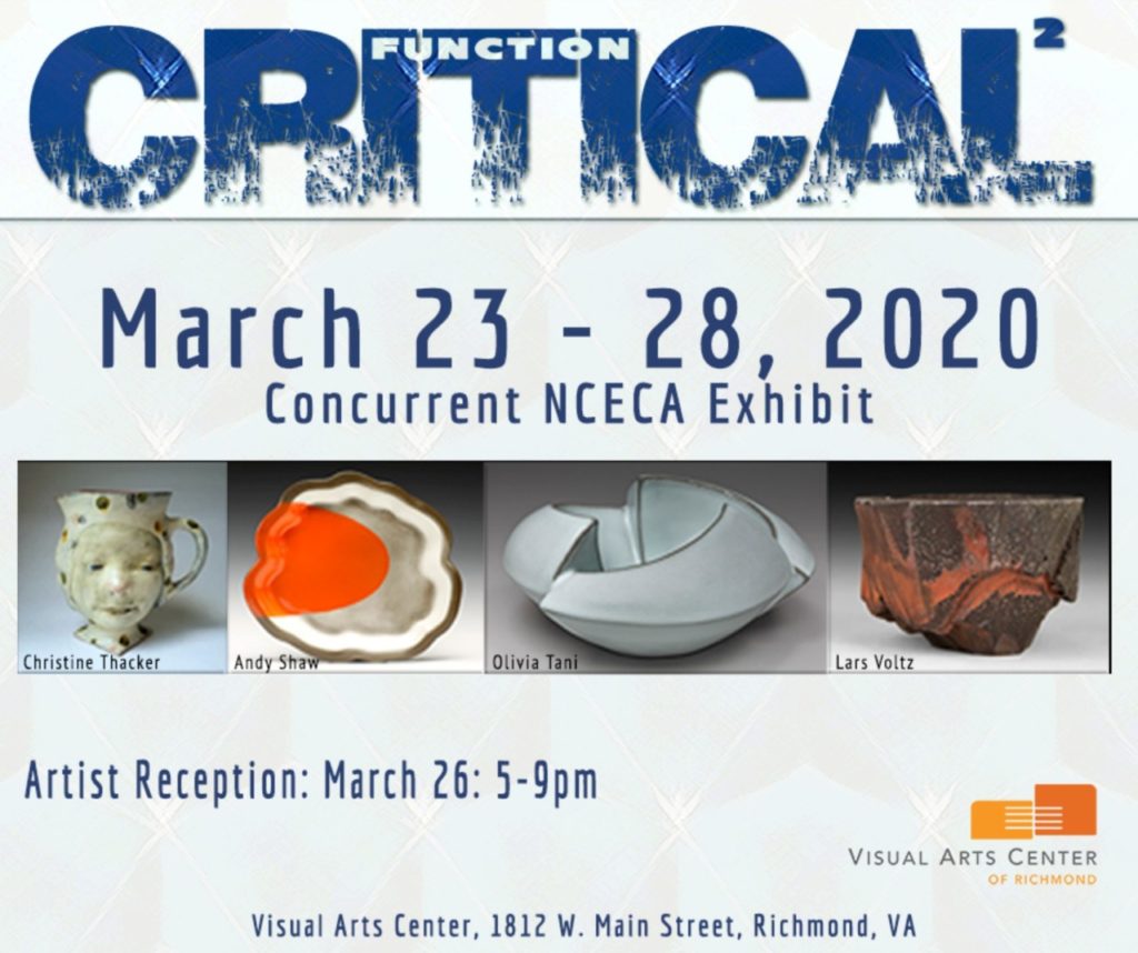 NCECA Concurrent exhibition. Sponsored by Visual Arts Center, 1812 W Main St, Richmond, Virginia 23220
