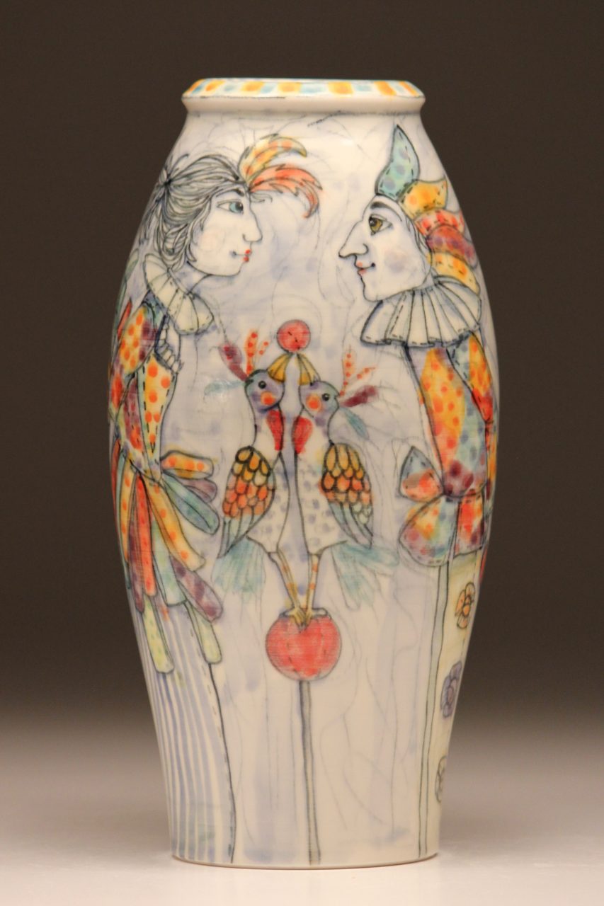 Vessels For Flowers will feature the work of 12 artists working in clay, making and designing vessels to display nature’s beauty. This broad range of clay vessels will show the very best that this medium can offer. From highly decorated narratives, to quiet focus on form, the variety of work is incredible.