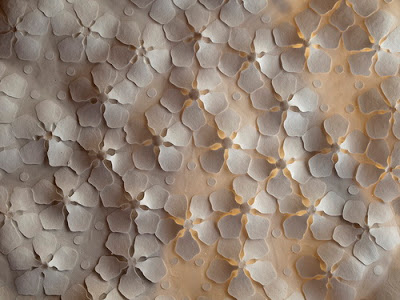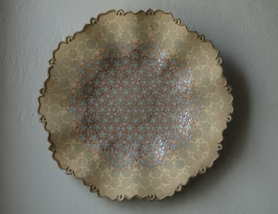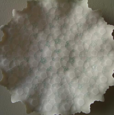 When she encountered Penrose’s aperiodic tiling, she began incorporating the principles into her porcelain plates. Her work is therefore based on the highest forms of geometry, yet the same patterns are found in unicellular organisms, and a cross-section of a strand of DNA, and has been called the geometry of life. Aperiodicity also describes a slice through 5th dimensional hyper-space – the geometry of the cosmos.”View more incredible work on her website here.
