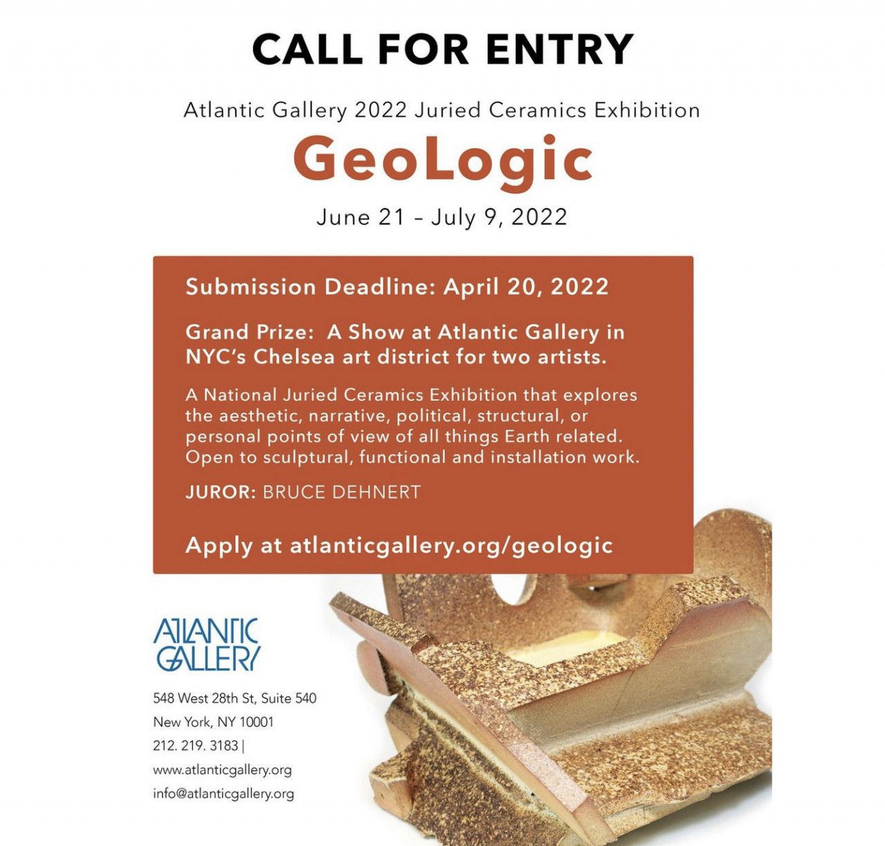 Application Process: Compile as one PDF document: A letter of interest, CV, artist statement, teaching philosophy, two sample syllabi, statement on diversity equity and inclusion, 20 labeled images of personal work and 20 labeled images of student work. Please include contact information for three references (address, phone number and email). Apply Here: https://alfreduniversity.applytojob.com/apply/LefqQnFFKj/AssistantAssociate-Professor-Tenure-Track-Position-Ceramic-Sculpture