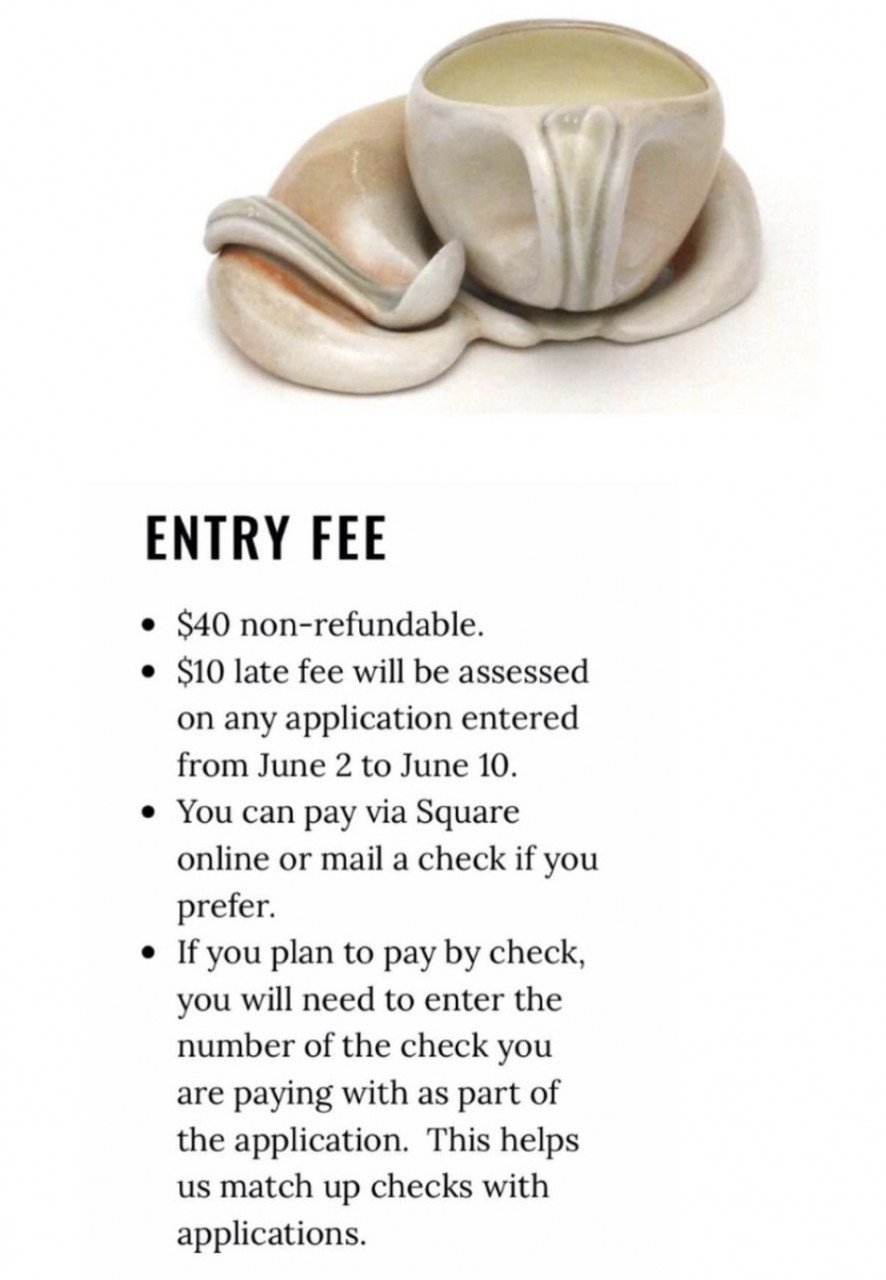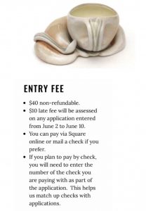 There is a $45 fee for all applicants. Up to 10 additional images can be submit for an extra $5/image. Please capitalize first letters of all names, titles and medium in application.
