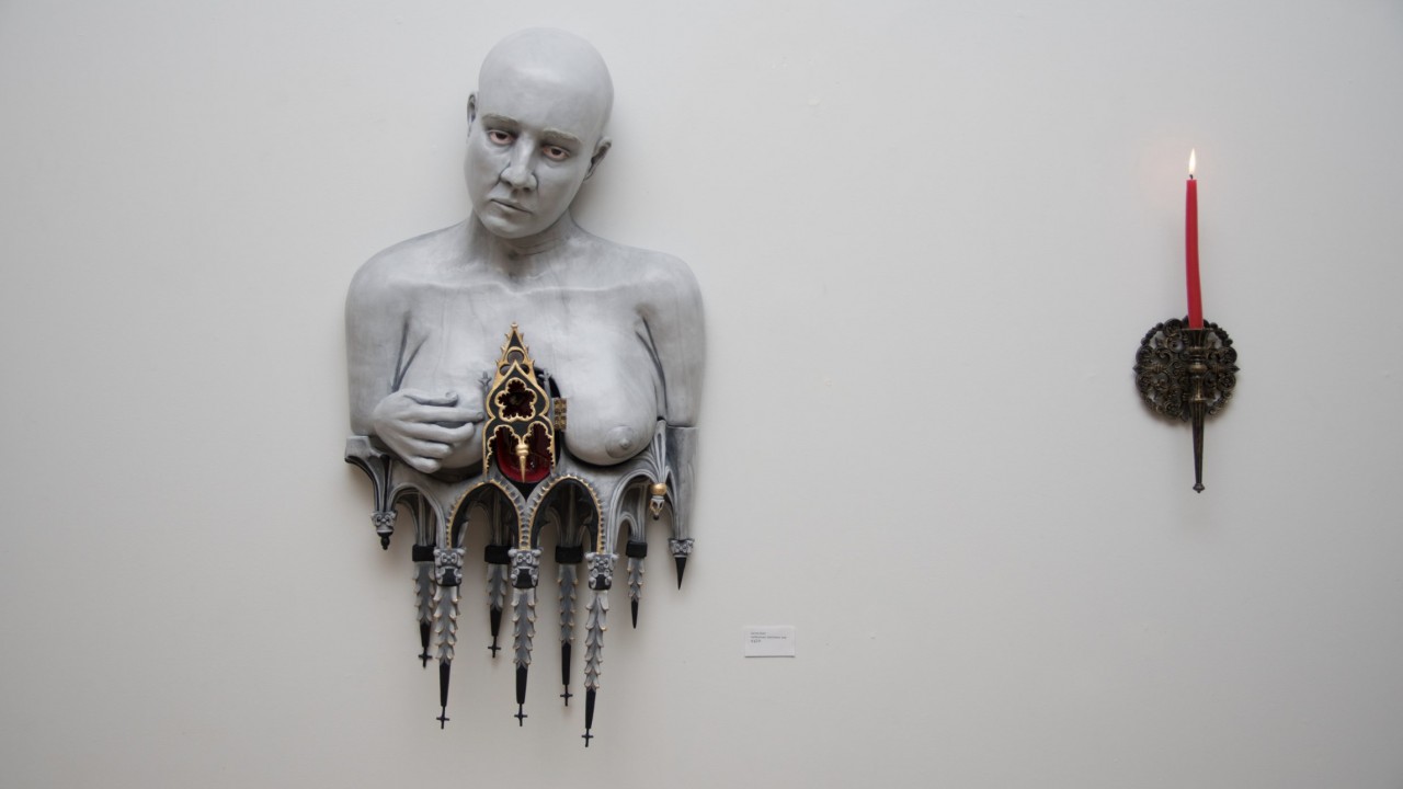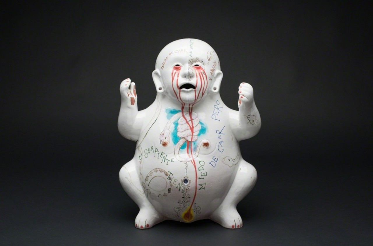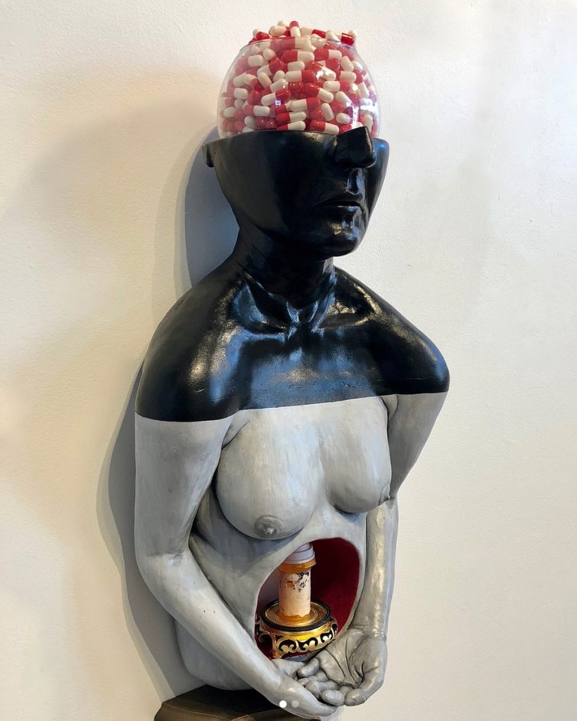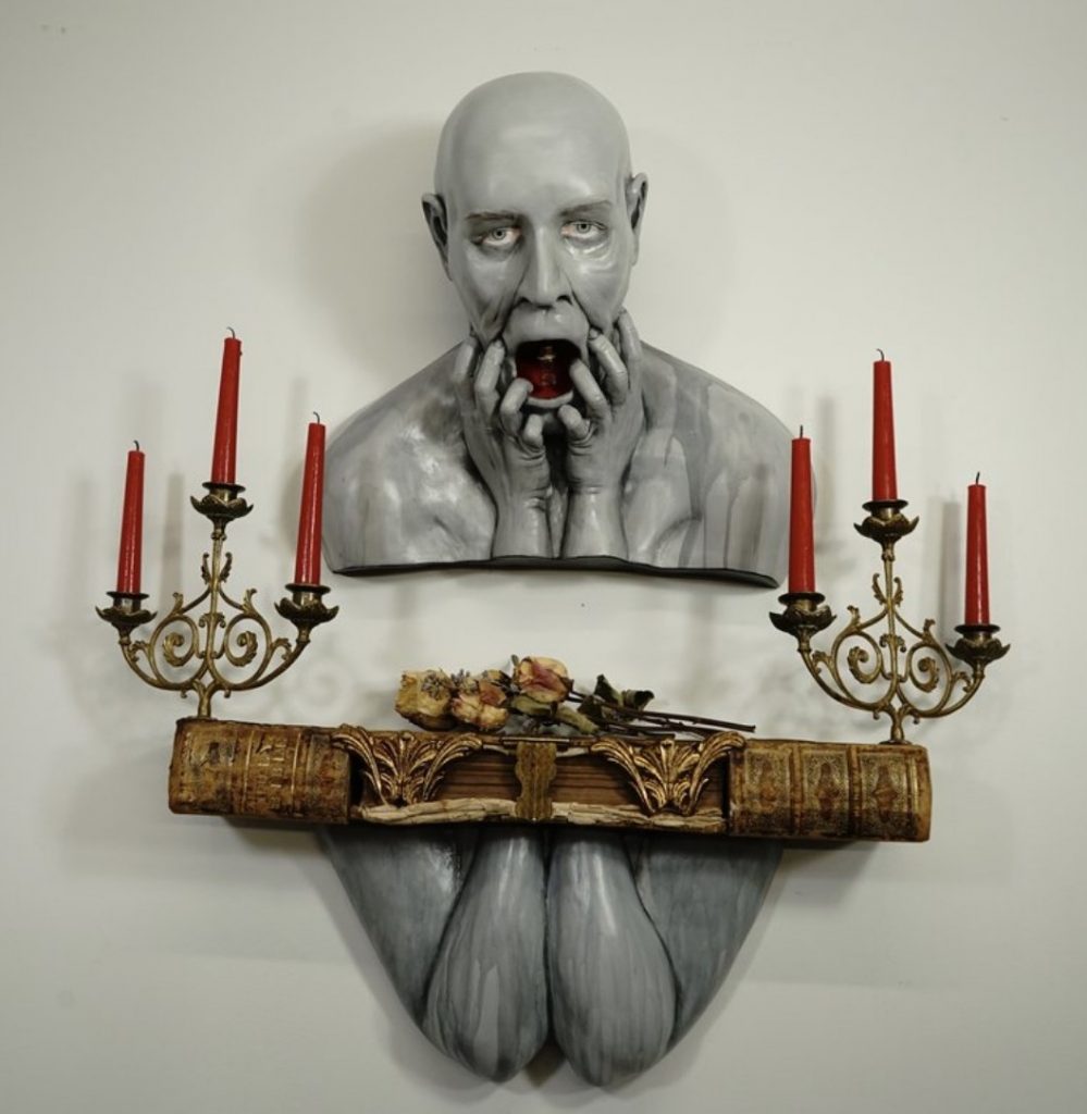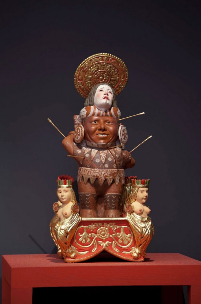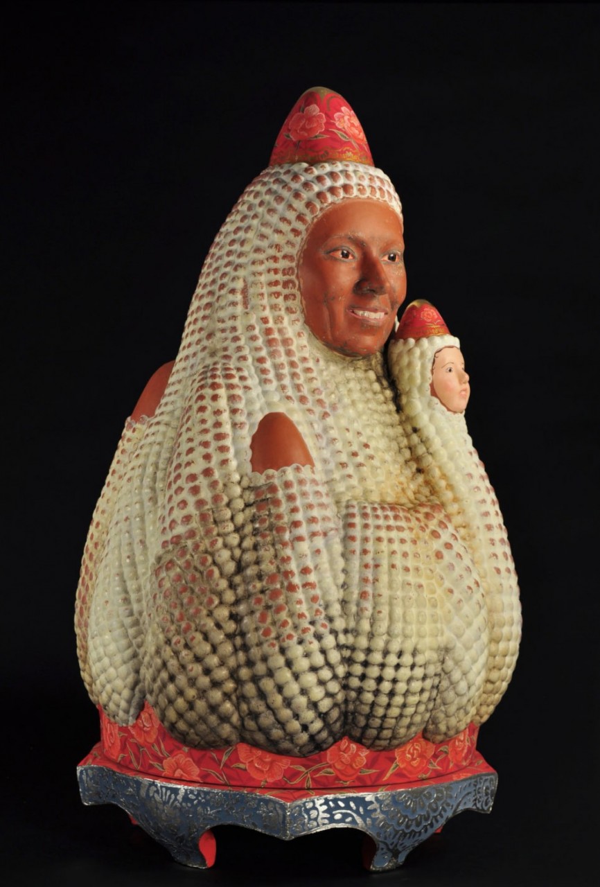 “Both artists focus on figurative elements; Wesley’s folk / naive-like people and dogs are sculptural with an edge to them (kind of awkward, a bit creepy and scary, but wonderfully created and memorable) while Ryan’s work is functional but decorated with fairly detailed and realistic surfaces (lifelike enough to straddle the line between functional and sculptural with a definite Latin American look to them).”
