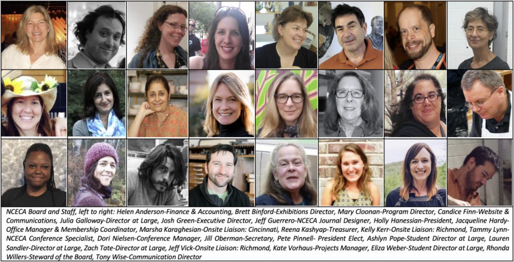 Over the past weeks, NCECA has heard from many of you. Your messages both to stay the course with the 2020 conference and those urging us to cancel have been read, shared, and heeded. Fortunately, and unfortunately, communing in large groups is a huge part of what NCECA has been, is, and will continue to be. Hundreds of you in the Greater Richmond community have been busy planning for years, and we are aware of how disappointing this news must be. NCECA has and will continue to be an organization that values people. Our love and dedication to ceramic art is bound up in relationships, teaching, and learning. When considering all of the factors before us, we felt that the well-being of the people and communities that have led us through 53 extraordinary conferences needed to be paramount in our decision-making.
